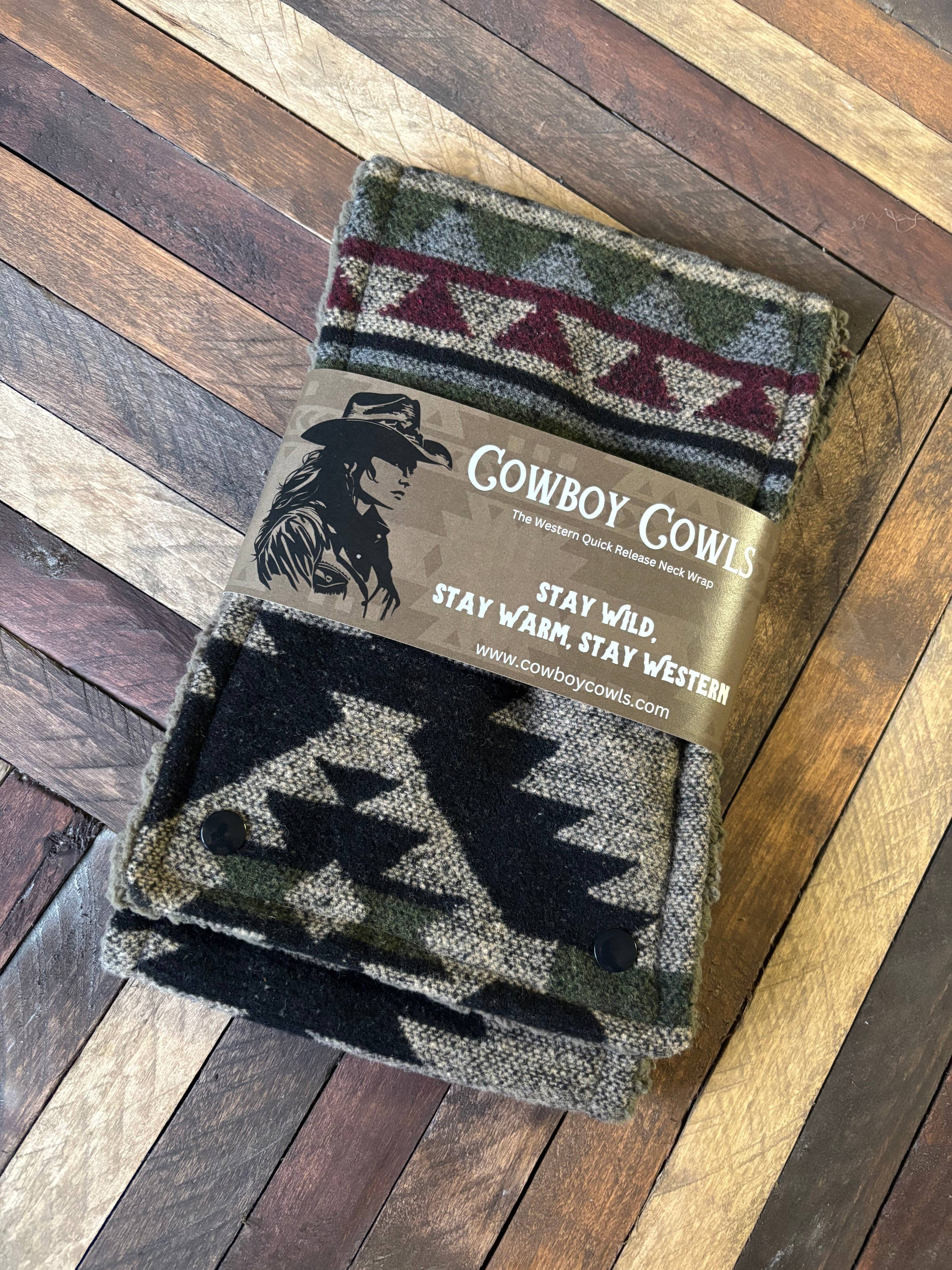 The Wickenburg Cowboy Cowl is the ultimate winter accessory, combining the durability of a poly-blend wool exterior with the comfort of the interior of traditional Sherpa for extra warmth.