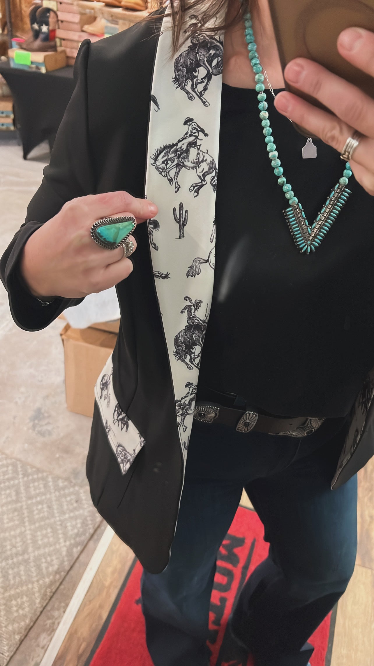 How CUTE would this be with a white shirt, your fav Kimes RanchJeans, your dress boots (or pink boots 🩷); and ur fav piece of turquoise 👌