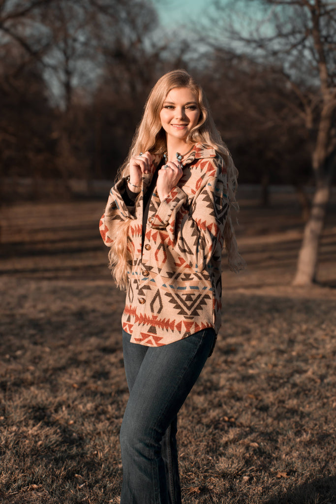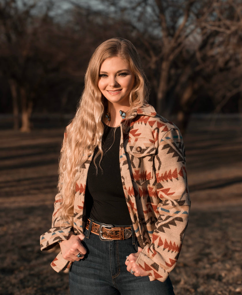 Ladies Aztec Shirt Jack with Western Flap Chest Pockets