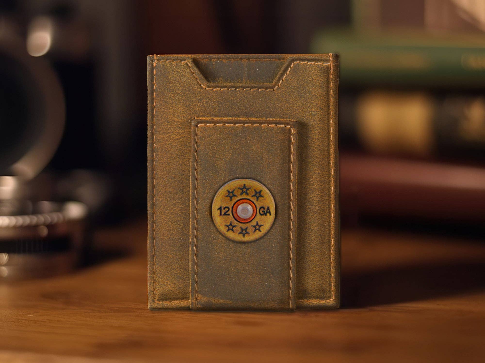 Shotshell Vintage Tan Leather Magnetic Front Pocket Wallet